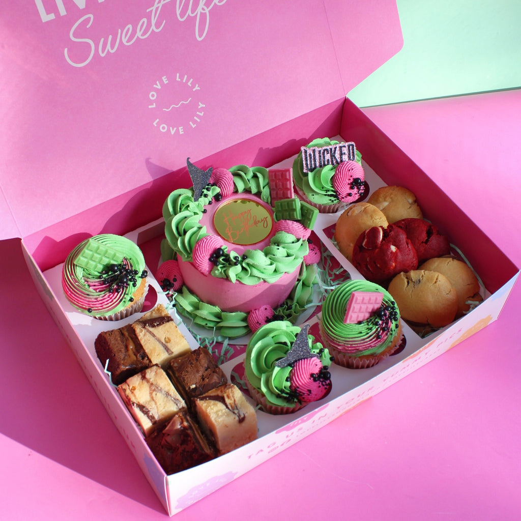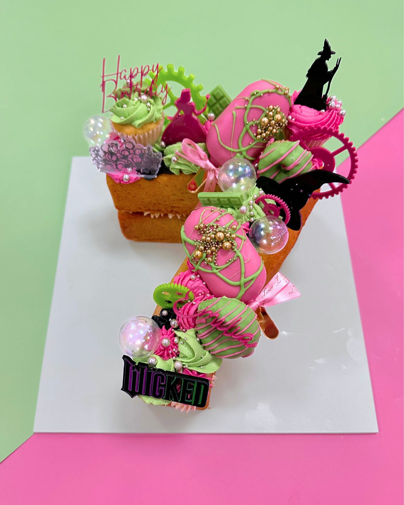 Two themed treat boxes, a stunning Lambeth cake, a Wicked number cake, and a fully themed celebration cake coming soon! 👀